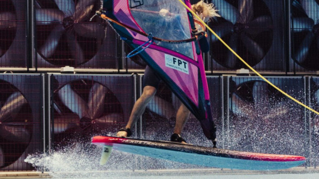 Throughout the day, riders soaked up the Boot Dsseldorf experience, hanging out around the show, exploring the convention, jumping into the pool for some pump-foil action, and socializing in the areas surrounding Hall 17. The calm before the storm. And when the clock hit 16:45, the storm finally arrived.