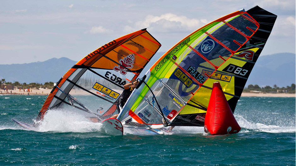 Am fünften Tag des PWA Costa Brava Catalunya pfiff der Tramontana von den Pyrenäen, genug für spannende sieben Stunden Slalomracing bei 12-23 Knoten Wind. Am Ende des Tages konnten zwei weitere Eliminations abgeschlossen werden. Antoine Albeau ( RRD / NeilPryde ) stürmte zum Sieg im zweiten Rennen. Sein Erzrivale Bjorn Dunkerbeck ( Starboard / Severne / Chris Benz / Dunkerbeck Eyewear), scheint zurück zu sein auf der Siegerstraße - er gewann die dritte Elimination. Albeau führt derzeit die Rangliste an, aber mit einer sehr guten Windprognose für den heutigen, letzten Tag der Veranstaltung kann sich noch einiges ändern.