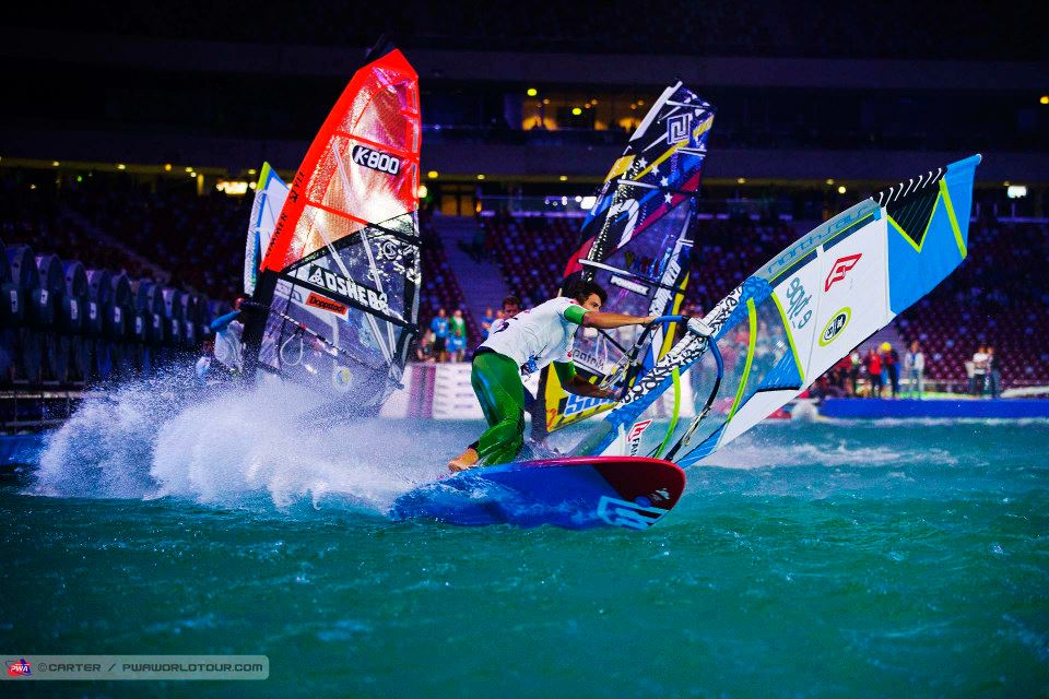 Nicolas Akgazciyan zog gestern Abend die rießen Show ab. Der Franzose qualifizierte sich sowohl im Slalom als auch im Freestyle für die Halbfinals und kam wahrscheinlich gestern im Pool von Warschau am Besten zurecht. Außerdem sind Ben Proffitt und die Italiner Matteo Iachino sowie Andrea Rosati im Halbfinale während bei den Mädels Delphine Cousin, Lena Erdil, Arrianne Aukes und Zofia Klepacka am Schnellsten um die Tonnen surften.