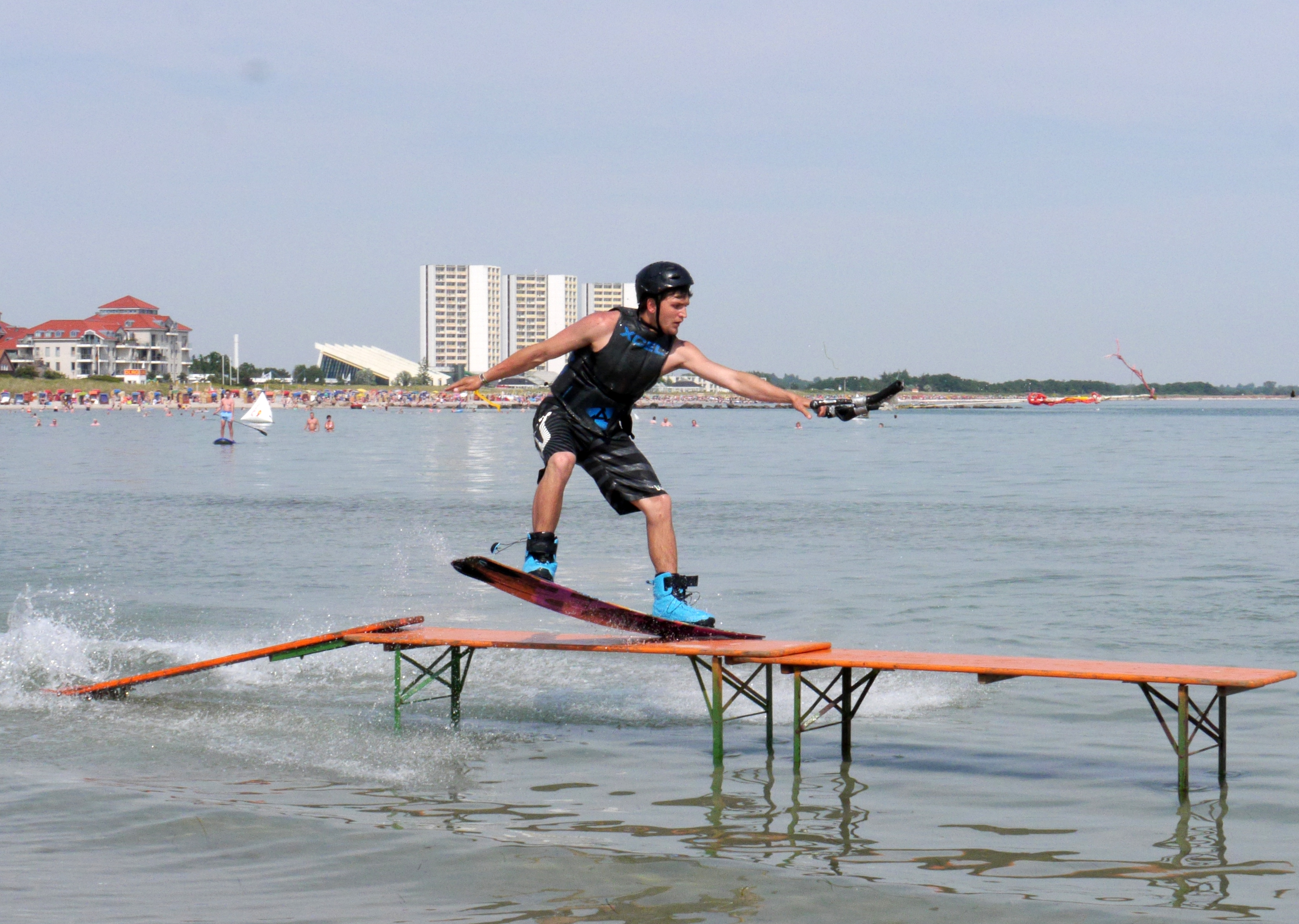 Die Youngster der Kitesurfszene hielt es jedoch nicht lange am Strand. In kürzester Zeit wurden eine Winch und ein paar Kicker aufgebaut. Direkt vor der Kulisse von Fehmarn wurde spektakuläre Sprünge ausprobiert. In dem Eventvillage auf dem Südstrand wurde der Never Summer Pump Track getestet. Sogar vier Fahrer waren gleichzeitig auf der 70m langen Skateboardbahn und lieferten sich spannenden Verfolgungsjagden.