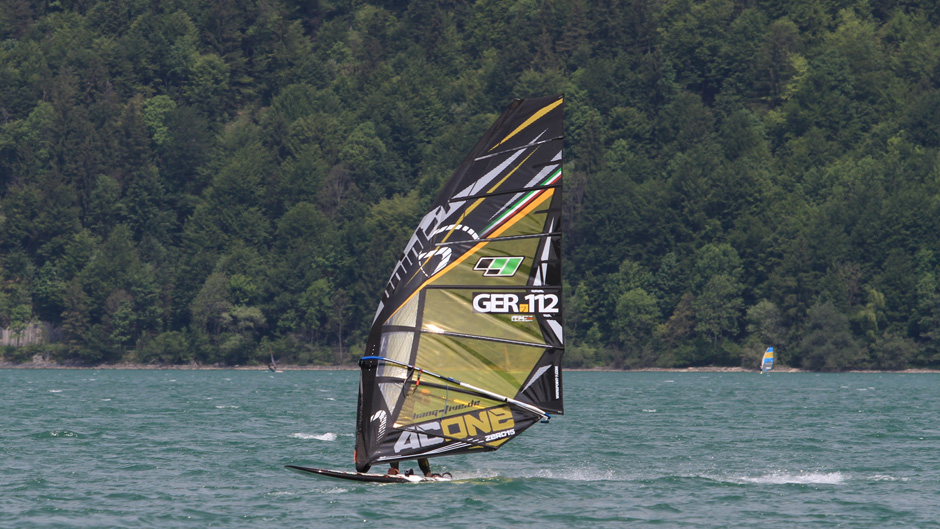 Dass der Alpsee öfter mal gute Bedingungen für schnelle Zeiten hat, zeigt mit aktuell Platz 15 Mario Gotthardt am 9. Juli mit durchschnittlich 27,495 Knoten, gefahren mit einem Point-7 AC1- 8,6 und RRD X-Fire 122.
