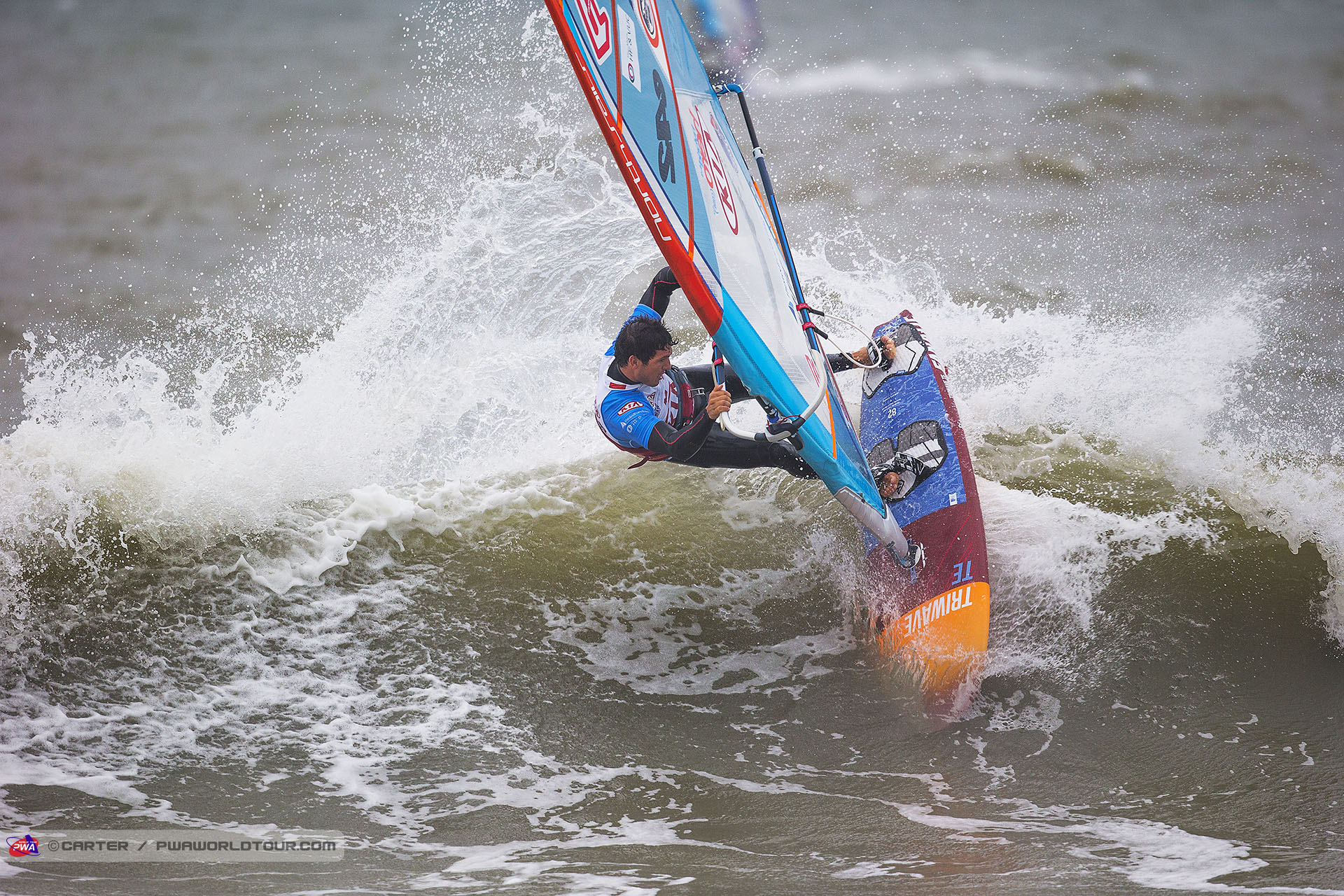 Martin ten Hoeve (Goya Windsurfing / Point-7) was forced to retire from the competition after sustaining a suspected broken foot during the warmup. Everyone from the PWA wishes Martin a speedy and successful recovery and we will try to bring you an update when we know more. The skippers’ meeting has been called bright and early for tomorrow morning at 7am with the forecast currently predicting 20-30 knot westerly winds and waves of up to 2.7 meters. If the conditions allow then the action will commence from 7:30am. As always you’ll be able to follow all of the incredible action live via the PWA live stream and live ticker @ www.pwaworldtour.com.