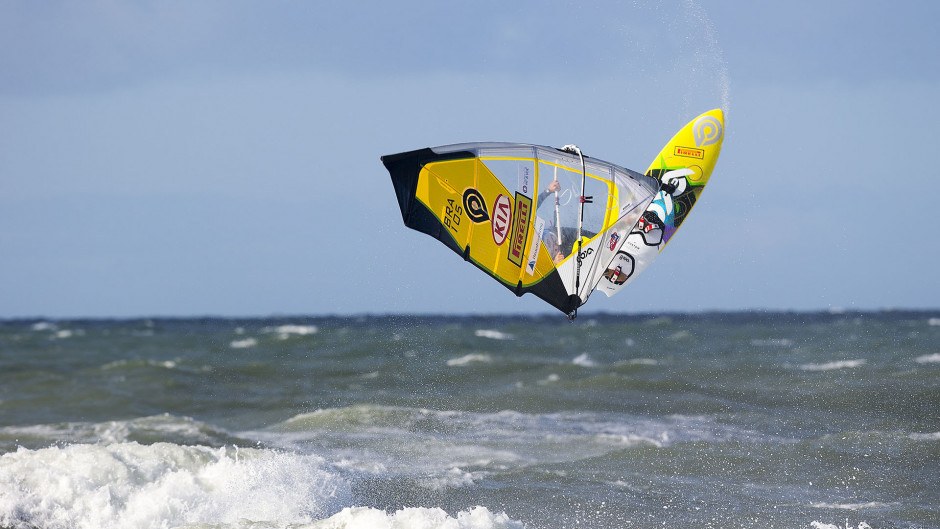 The wind picked up for the final and it turned into a double forward off with everyone throwing themselves into doubles left, right and centre. For a long time it looked as though Alessio Stillrich (Fanatic / North) was heading for the top of the podium as the twenty year old landed an almost perfect double forward to earn 28.5 points out of a possible 30. However, there was one man who was intent on claiming first place — Marcilio Browne (Goya Windsurfing / MFC) — and the Brazilian launched himself into multiple efforts, which paid off in the dying minutes as he posted a score of 28.7 points to steal the victory. Robby Swift completed the podium ahead by Jules Denel.