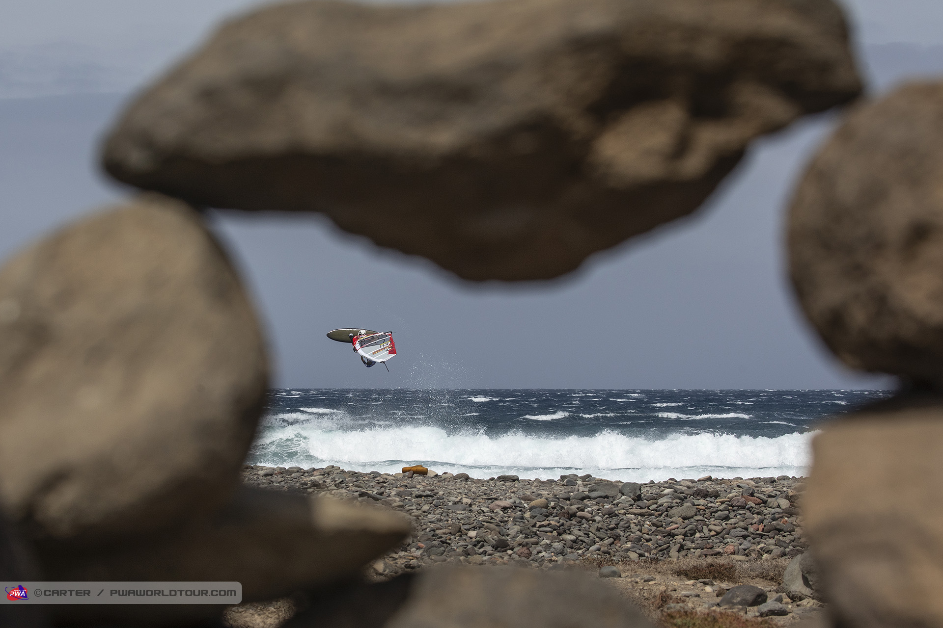 Women’s Single EliminationDaida Moreno (Severne / Severne Sails / Maui Ultra Fins) posted the highest score of the day - 35.28 points - against Sarah-Quita Offringa (Starboard / NeilPryde / Maui Ultra Fins) in the semifinals to deservedly book her place in the winners’ final with an insane air taka, earning 9.62 points, being the pick of her moves. Unfortunately, the conditions deteriorated for both the men’s and women’s finals making sailing extremely difficult, but Daida still managed to perform a backloop, tweaked pushloop and a stalled forward to claim victory in the single elimination.Justyna Sniady (Simmer / Simmer Sails / AL360) is now guaranteed her first ever podium on the PWA Wave World Tour after the Pole performed brilliantly today, while also causing a major upset in the semifinals as she defeated reigning world champion - Iballa Moreno (Severne / Severne Sails / Maui Ultra Fins) to qualify for her first ever winners’ final. Sniady landed backloops, forwards and pushloops throughout to move into the top two while consistently scoring waves in the good-to-excellent range as she demonstrated that she has taken her sailing to another level over the winter. Sniady is now guaranteed 3rd place at worst, no matter what happens in the double, and will be absolutely delighted with today’s efforts!Having recovered from the disappointment of not making the winners’ final - Sarah-Quita Offringa - recovered to secure the final spot on the podium in the single elimination. Although, now she will only be looking to move upwards in the double. The Aruban outscored Daida in the jumping department in the semifinal, but couldn’t find the wave scores she required this time around. Reigning world champion - Iballa Moreno - posted the highest score of any of the top 8 women in the quarterfinals - 25.26 points - but then seemed to struggle in the nuclear conditions. Iballa consistently launched into big backloops, but couldn’t quite hold onto the landings, while seeming too overpowered to inflict any damage with her wave rides, which are usually her most deadly weapon. Iballa will now no doubt be focused on trying to fight her way into the top 3 in the double elimination.The top 5 is currently completed by Marine Hunter (KA Sail), Birgit Rieger (Flikka), Maaike Huvermann (Starboard / Severne / Maui Ultra Fins) and Caterina Stenta (RRD / RRD Sails / Maui Ultra Fins).Men’s Single EliminationCurrent vice-world champion - Ricardo Campello (Brunotti Boards) - earned the best birthday present possible as the just turned 34-year-old won the single elimination ahead of Marcilio Browne (Goya Windsurfing) with a series of world class performances. In the winners’ final, Campello posted the highest score of the contest - 41.33 points - after putting on a jumping and wave riding masterclass. On his way to victory, Campello landed a huge double forward, a perfect pushloop forward, a tweaked pushloop, while posting two scores in the excellent range, which included a sick tabletop aerial. Campello will now look to defend his top spot in the double!For the second year in a row Marcilio Browne (Goya Windsurfing) qualified for the winners’ final in Pozo Izquierdo after winning a blockbuster heat against reigning event champion - Philip Köster (Starboard / Severne / Maui Ultra Fins) - in the semifinals. Both sailors produced an outstanding display with huge pushloop forwards, double forwards and backloops off-the-lip, but eventually Browne came out on top by 40.95 points to 38.97. In the final, Browne filled his jump scoresheet again, but couldn’t quite find the waves he needed. Philip Köster received a bye in the round of 16 and the quarterfinals after Thomas Traversa (Tabou / GA Sails) was forced to withdraw from the contest through injury, but in reality that may not have been the best preparation for the latter stages of the contest. The 4-time world champion sailed exceptionally well in the semifinals but then crashed much more than people are used to seeing in the battle for third and 4th place, which may just be testament to just how hard to conditions became for the finals. Köster completes the podium in the single elimination and you still can’t rule him out from coming back through the double elimination as he seeks to complete a hat-trick of event wins here. Reigning world champion - Victor Fernandez (Fanatic / Duotone / Shamal Sunglasses) - suffered a narrow loss to Campello in the semifinals with less than a point between them, but then, like Köster, the Spaniard looked out of sorts in Heat 24 as both he and the German failed to complete their scoresheets, which is basically unheard of for these two juggernauts. There were some rumours on the beach that Fernandez may have suffered some kind of injury, but we do not have official news to confirm that at this stage!The top 5 is currently completed by Alex Mussolini (RRD / RRD Sails), Leon Jamaer (JP / NeilPryde), Gollito Estredo (Fanatic / Duotone) and Thomas Traversa (Tabou / GA Sails), while Robby Swift (JP / NeilPryde / SWOX), Adam Lewis (Fanatic / Duotone / SWOX), Omar Sanchez (Star-Fish / KA Sail), Jaeger Stone (Starboard / Severne / SWOX / Shamal Sunglasses), Dany Bruch (Bruch Boards / GA Sails / AL360), Alessio Stillrich (Fanatic / Duotone) and Josep Pons (I-99 / Point-7) will all be looking to defend their place in the top 10 in the double elimination at a minimum.Double EliminationAfter a one hour break, the men’s double elimination began and the opening two rounds have been completed at the close of play. Takara Ishii (RRD / RRD Sails), who finished second in the U20s, caused a big upset in the opening heat as he dispatched of last year’s world No.15 Jules Denel (JP / NeilPryde), while elsewhere, local boy Moritz Mauch (Severne / Severne Sails) also faced a first round exit from the double at the hands of 18-year-old - Miguel Chapuis (JP / NeilPryde) as the next generation made their mark in the main draw. Cha