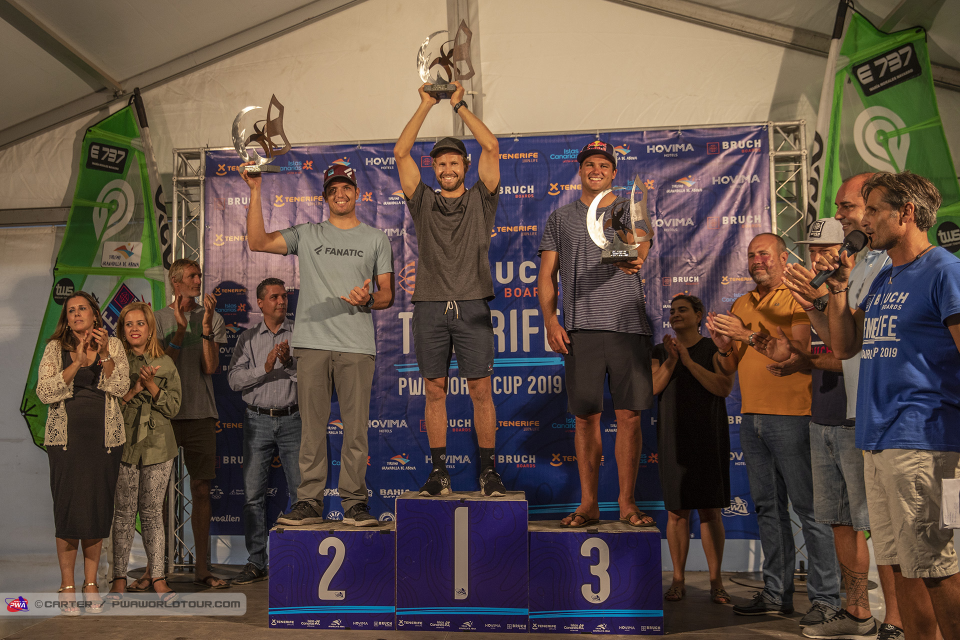 Women’sIballa Moreno (Severne / Severne Sails / Maui Ultra Fins) sailed extremely consistently throughout and it was that level of consistency that would eventually see the reigning world champion claim the event title for a 4th consecutive year as she continued her recent domination of El Médano. Out of the 4 heats that Iballa sailed today, she posted 3 scores between 14.07-14:38 points Justyna Sniady (Simmer / Simmer Sails / AL360) proved that her maiden podium in Gran Canaria last month was no fluke as the Pole backed up that performance with another brilliant display in Tenerife to earn back-to-back podiums on the world tour. Sniady got the better of Sarah-Quita Offringa (Starboard / NeilPryde / Maui Ultra Fins) for the second time this season as she defeated the Aruban in the semifinals after landing a one-foot backloop. Sniady couldn’t find the jump she needed in the final to rival Iballa, but after securing back-to-back second places she now leads the world tour after the first two events.Sarah-Quita Offringa (Starboard / NeilPryde / Maui Ultra Fins) had to settle for third place again in Tenerife, but for a long time, it looked as though she may miss out on the podium with Lina Erpenstein (Severne / Severne Sails) leading the battle for 3rd and 4th for the majority of the heat. However, Offringa produced a buzzer-beater by earning her highest wave score with her final effort to snatch 3rd place. Erpenstein was making her first appearance of the season having missed the opening event in Gran Canaria and she slotted seamlessly back into the competition as she showed off her trademark aggressive wave riding approach to earn a hugely deserved 4th place.Men’sJaeger Stone (Starboard / Severne / SWOX) has come close to winning the Tenerife PWA World Cup on a couple of occasions in the last few years - winning the single elimination in 2015 and finishing second again last year. The Australian looked a threat throughout today and he deservedly earned his place in the winners’ final after winning an extremely close semifinal against Ricardo Campello (Brunotti Boards). In the earlier round, it was Stone’s explosive wave riding that proved pivotal and against Campello, it was Stone’s wave-riding which separated the two sailors again. Campello wasn’t happy that his big double forward only scored 7.78 points, but he would’ve needed it to score at least 8.08 points in order to reverse the result as Stone won the heat by 0.29 points. In reality, Campello’s downfall was the fact that he was left counting a 4.75 point wave as his backup score. Stone then saved his best performance until last in the winners final against reigning event and world champion - Victor Fernandez (Fanatic / Duotone / Shamal Sunglasses) - as the 28-year-old posted his highest scoring heat of the contest - 23.75 points - at the perfect time to become the first sailor, other than Fernandez or Philip Köster (Starboard / Severne / Maui Ultra Fins), to win the Tenerife PWA World Cup since 2011, while also deservedly earning his first victory on the world tour. Stone signed off the final in style as he tweaked an aerial before backing it up with a taka to earn the joint second highest wave of the contest - 9.5 points.Victor Fernandez continued his unbelievable record in Tenerife by making the podium again meaning the Spaniard has not finished outside the top 3 here since 2012. The reigning world champion couldn’t quite find a way to stop Stone, but showed off his silky smooth wave riding time and time again to navigate his way into the top 2 and should be very happy with his days' works.Philip Köster completes the podium after claiming a clear cut victory against Campello in Heat 24. The German suffered a narrow defeat to Fernandez in the semifinals with just 0.36 of a point separating them, but is still well positioned for a shot at the title.Ricardo Campello recorded the highest scoring heat of the competition - 25.62 points - against Dieter van der Eyken (Severne / Severne Sails), while also recording the highest single wave score - 9.87 points - and highest single jump score - 9.27 - points - for a monumentally high double forward, but eventually had to settle for 4th place. However, given how the rest of the result played out Campello remains the world tour leader.Elsewhere, Marcilio Browne (Goya Windsurfing) finishes in joint 5th alongside Alex Mussolini (RRD / RRD Sails), Antoine Martin (JP / NeilPryde), who caused an upset by eliminating Adam Lewis (Fanatic / Duotone / SWOX) in Heat 19a and Thomas Traversa (Tabou / GA Sails).With there only enough time to complete a single elimination this time around that means that 8 sailors share joint 9th: Leon Jamaer (GER | JP / NeilPryde), Robby Swift (UK | JP / NeilPryde / SWOX), Marc Paré (ESP | Simmer / Simmer Sails), Dieter van der Eyken (BEL | Severne / Severne Sails), Adam Lewis (UK | Fanatic / Duotone / SWOX), Jules Denel (FRA | JP / NeilPryde), Moritz Mauch (GER | Severne / Severne Sails) and Julian Salmonn (GER | Bruch Boards / Gun Sails). We will take a full look as the results in the summary on TuesdayAfter almost 10 hours of competing the winners’ were then crowned just after 8pm at the beach to conclude a pulsating final day.Youth’s U20sAfter the completion of the single eliminations the Boy’s U20s was then concluded which saw Marino Gil (Goya Windsurfing) claim the top spot on the podium ahead of Adam Warchol (Quatro / Goya Windsurfing), Miguel Chapuis (JP / NeilPryde) and Takara Ishii (RRD / RRD Sails).To stay up to date with all the latest developments from Tenerife — including the live stream, elimination ladders, entry list, images and live ticker simply click HERE and scroll to the bottom of the page.Result 2019 Tenerife PWA World Cup - Women's Wave1st Iballa Moreno (ESP | Severne / Severne Sails / Maui Ultra Fins) 2nd Justyna Sniady (POL | Simmer / Simmer Sails / AL360) 3rd Sarah-Quita Offringa (ARU | Starboard / NeilPryde / Maui 