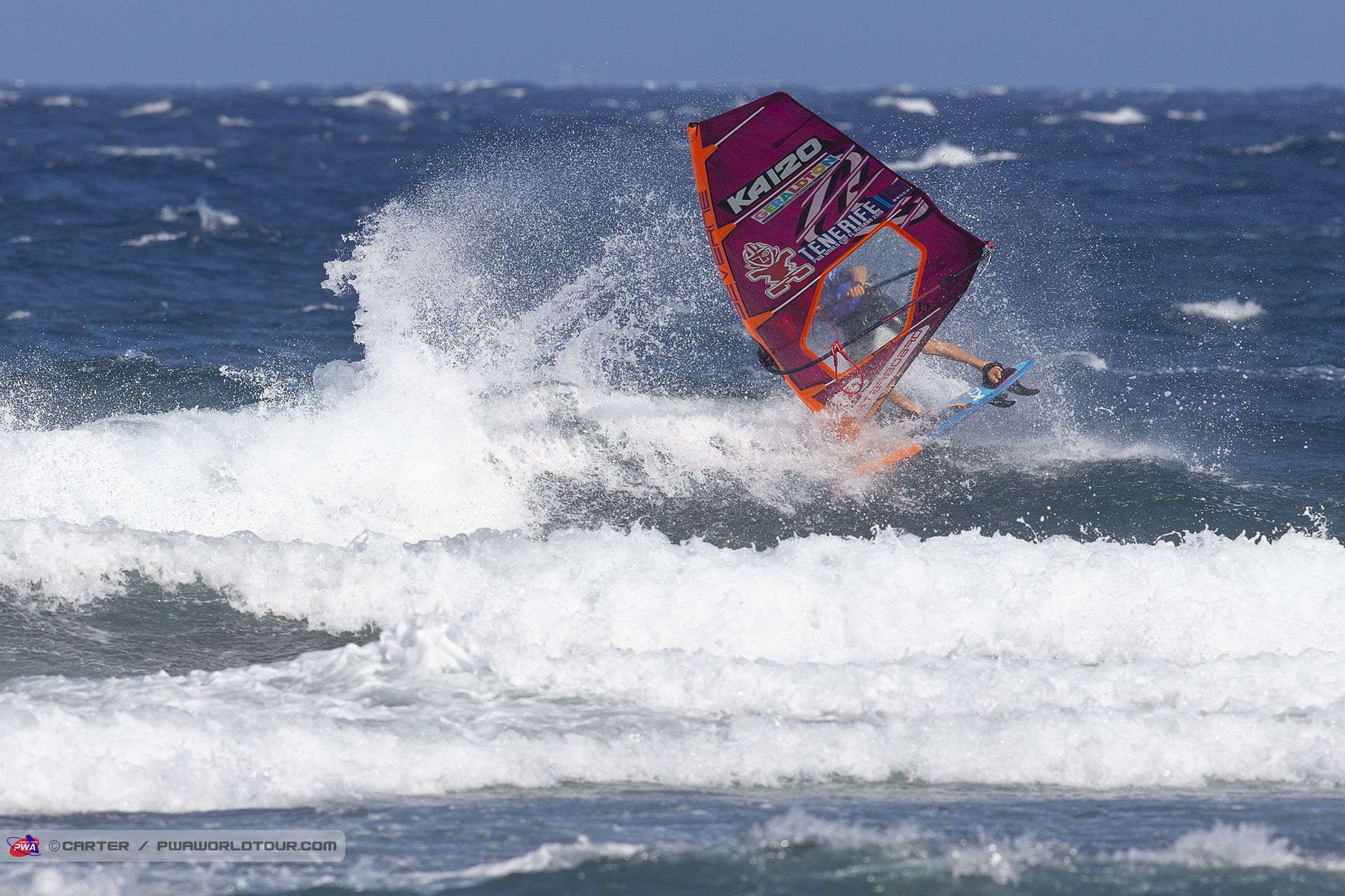 Das Warten hat sich am letzten Tag des PWA-Weltcup 2019 auf Teneriffa endlich ausgezahlt, denn der versprochene Wind und die Wellen, die am Vortag erwartet wurden, kamen schließlich gerade noch rechtzeitig an, um einen ganzen Wettkampftag zu bieten und gleichzeitig den 100%igen Rekord von Teneriffa zu halten. Nach einem langsamen Tagesbeginn nahmen Wellen und Wind schließlich zu, um nach 6 Tagen geduldigen Wartens ein solides Ende des Events zu ermöglichen.