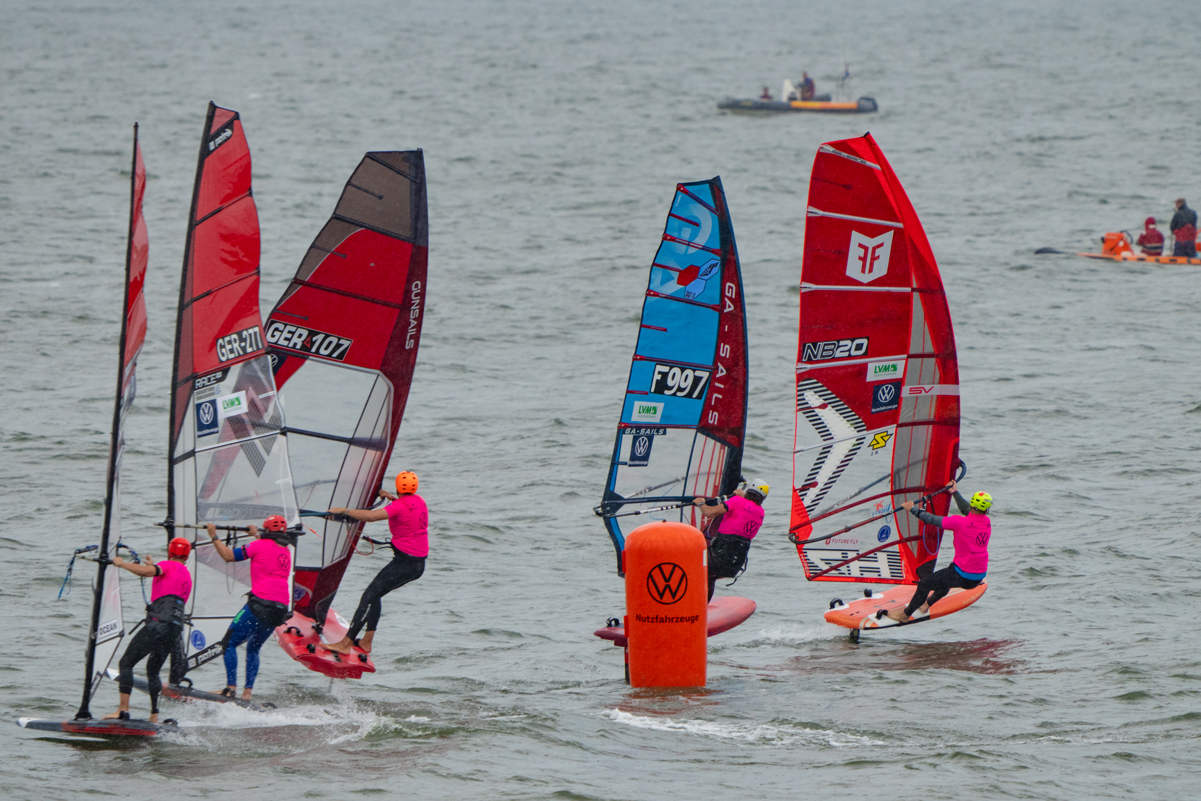 Direkt im Anschluss wurde eine vierte Wettfahrt gestartet. Dieses Mal schlug Vrieswijk mit einem Laufsieg zurück. Michele Becker sicherte sich abermals Platz zwei. Alexis Mathis komplettierte dieses mal das Podium. Der dänische Youngster Noah Vinther (DEN-7777, Patrik) bewies mit Platz vier, warum er als einer der besten Nachwuchsfahrer gilt. Mit Sacha Fortune (FRA-655, FMX Racing, Challenger Sails) konnte sich ein weiterer Franzose in den Top-5 platzieren. Der bisher zweitplatzierte Fabian Wolf (GER-404, Starboard, Severne) musste nach einem Sturz mit einem zehnten Platz Vorlieb nehmen.