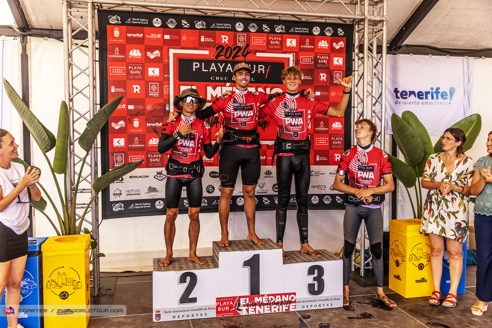 Dunkerbeck’s closest rival, was perhaps unsurprisingly, Hayata Ishii (RRD / RRD Sails), who finished seventh in the main draw yesterday. However, things weren’t quite as simple as that, as in the four-man final just half a point separated Ishii, Tobias Bjørnaa (Duotone Windsurfing) and Anton Richter (JP / NeilPryde). In the end, Ishii was given the nod for second place thanks to him earning the highest single wave score for a sick frontside 360 off of a critical section to beat Bjørnaa by way of a tiebreak.