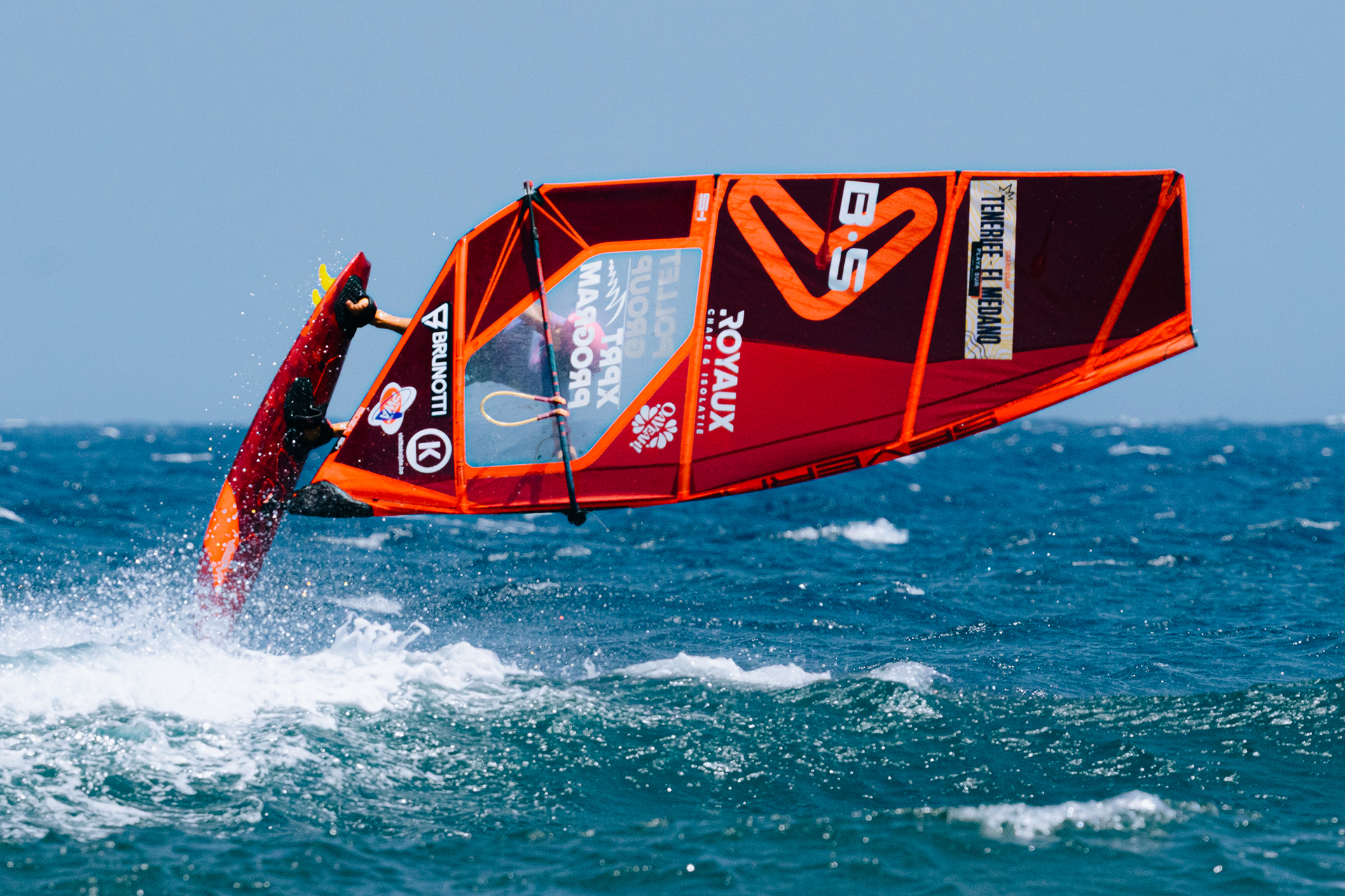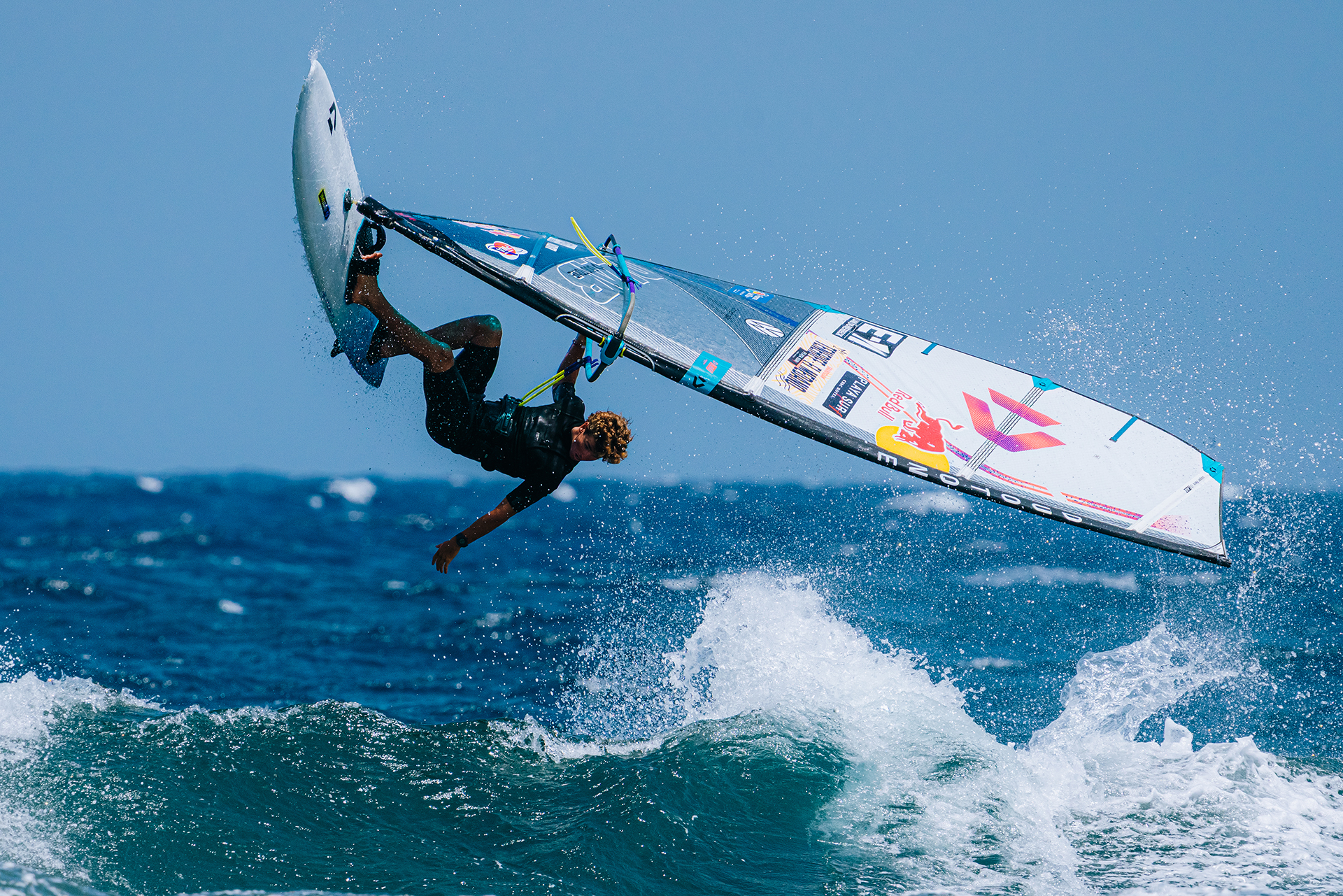 Moritz Mauch (Simmer / Simmer Sails) was once again one of the standouts in the wave riding department with his vertical, dynamic approach going down well with the judges. The 29-year-old equalled Warchol’s 7 point ride to split the highest single wave of the day and won Heat 6 ahead of Henri Kolberg (Naish / Naish Sails / Maui Ultra Fins), who landed an almost planing backloop to deny Lucas Meldrum (Duotone Windsurfing) a place in the next round.