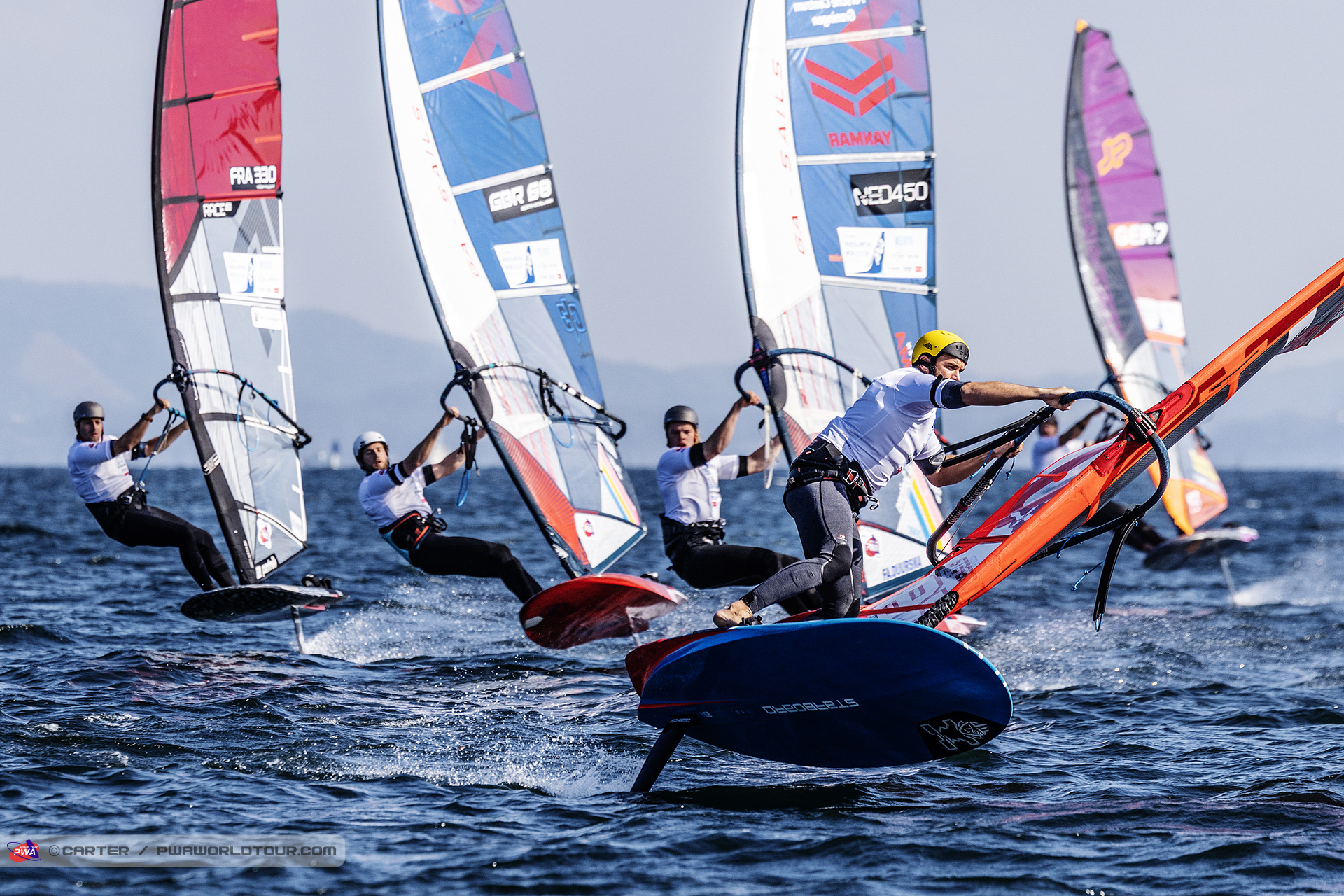 Mortefon, meanwhile, did brilliantly to overtake Maciek Rutkowski (JP / NeilPryde) on the final reach to move into third place and you never know if that extra place gained may make a difference yet. Rutkowski will have been disappointed to lose out on the last leg, but in terms of the fight for the overall top three, the Pole continues to be in pole position with Amado Vrieswijk (Future Fly / Point-7 / Z Foils) missing out on the opening Winners’ Final and finishing 10th, which gives Rutkowski a decent advantage.