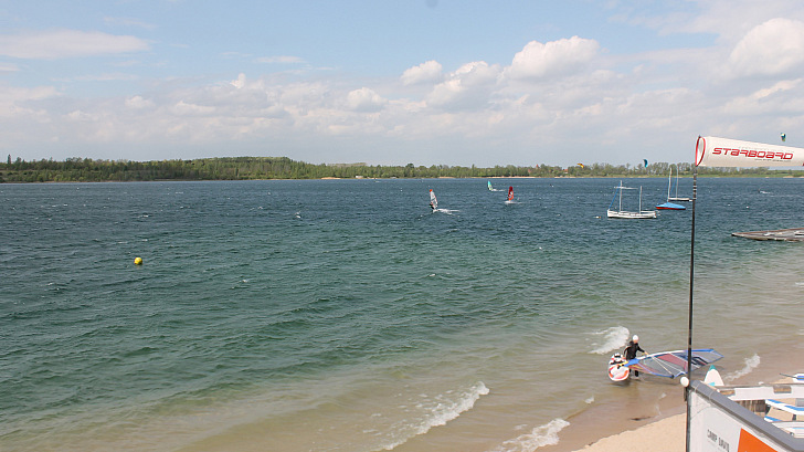 Nach fünfjähriger Sperrung waren wir heute zur Wiedererstbesurfung am Raßnitzer See. Die Vereinsmitglidschaft machte es möglich. Die Bedingungen waren wieder hochsommerlich. Der Wind kam aus Ost/ Nordost.