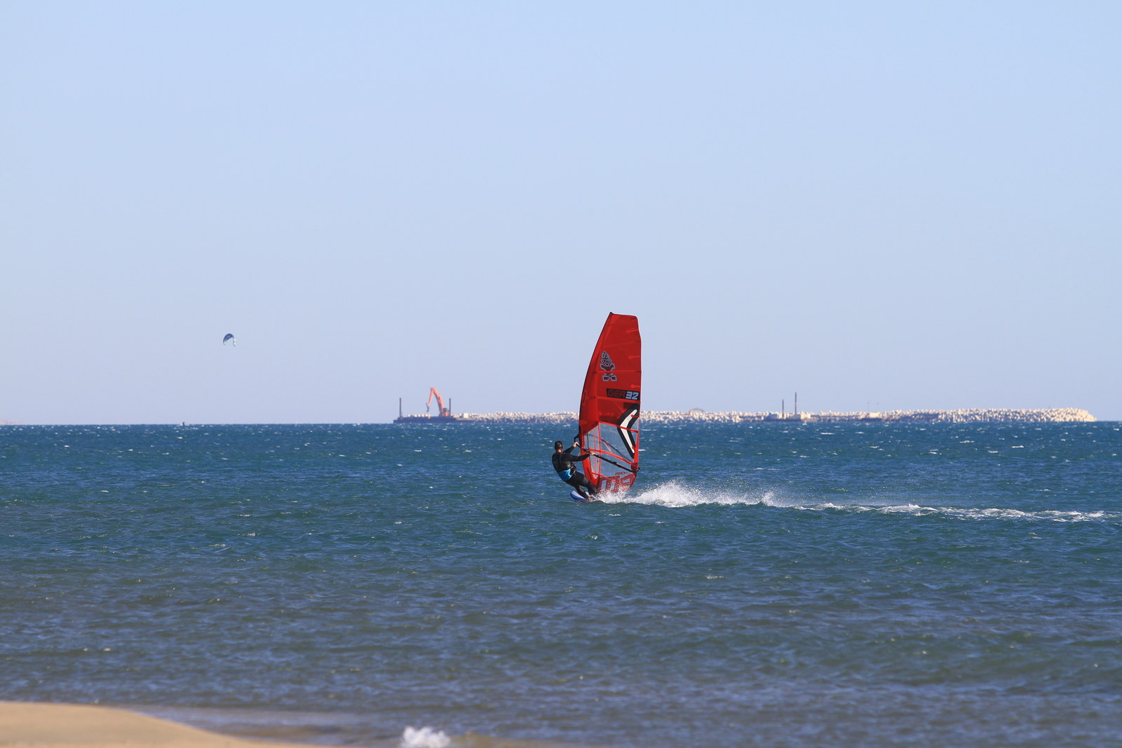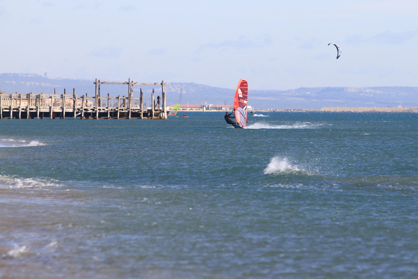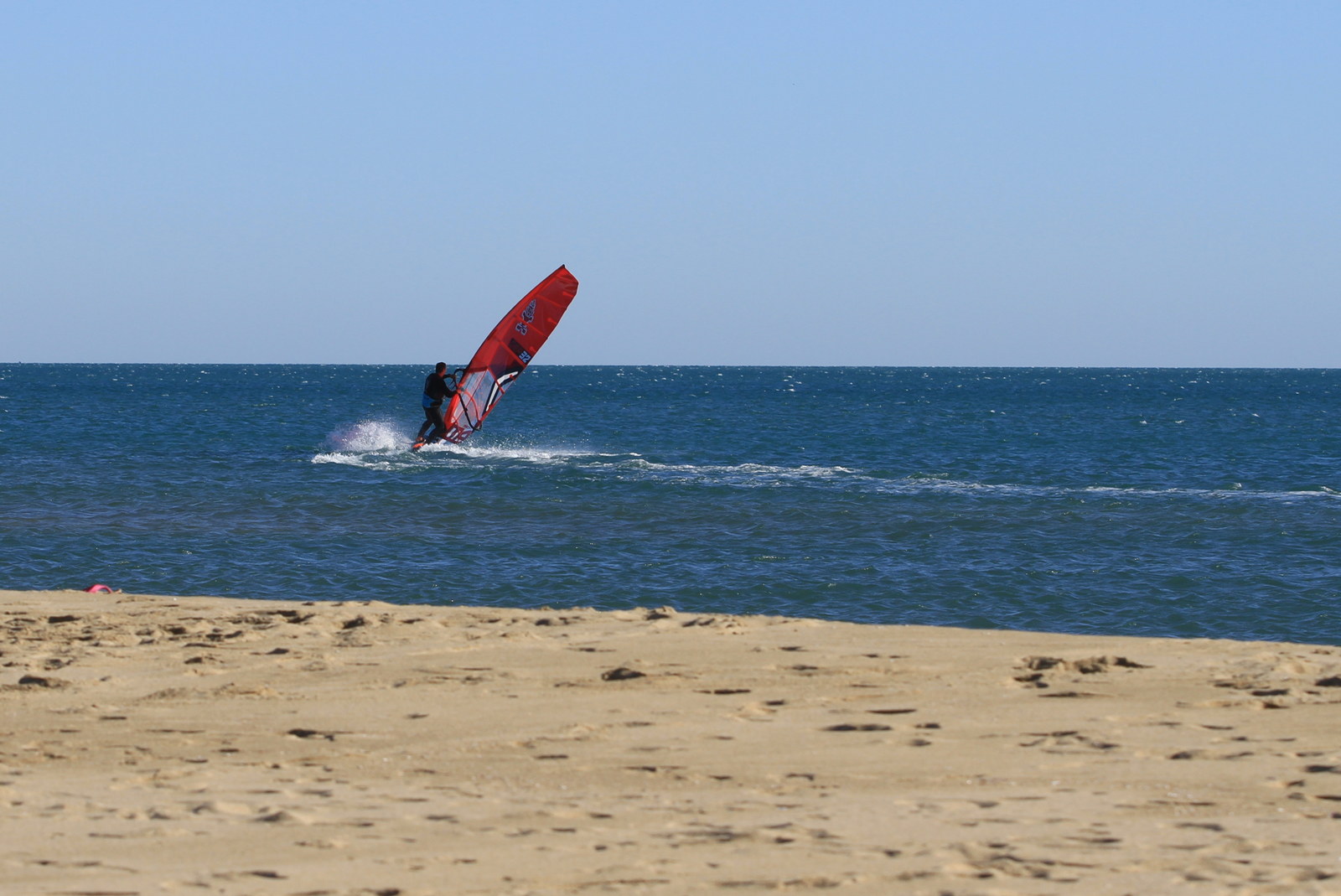 Sehr schöner Slalomtag heute! Guter Wind und viel Sonnenschein bei rund 23 Grad, fast noch Sommer. Immer noch sehr viele (sehr seichte) Sandbänke, so dass ich lieber etwas weiter entfernt vom Strand gefahren bin. Toller Tag.