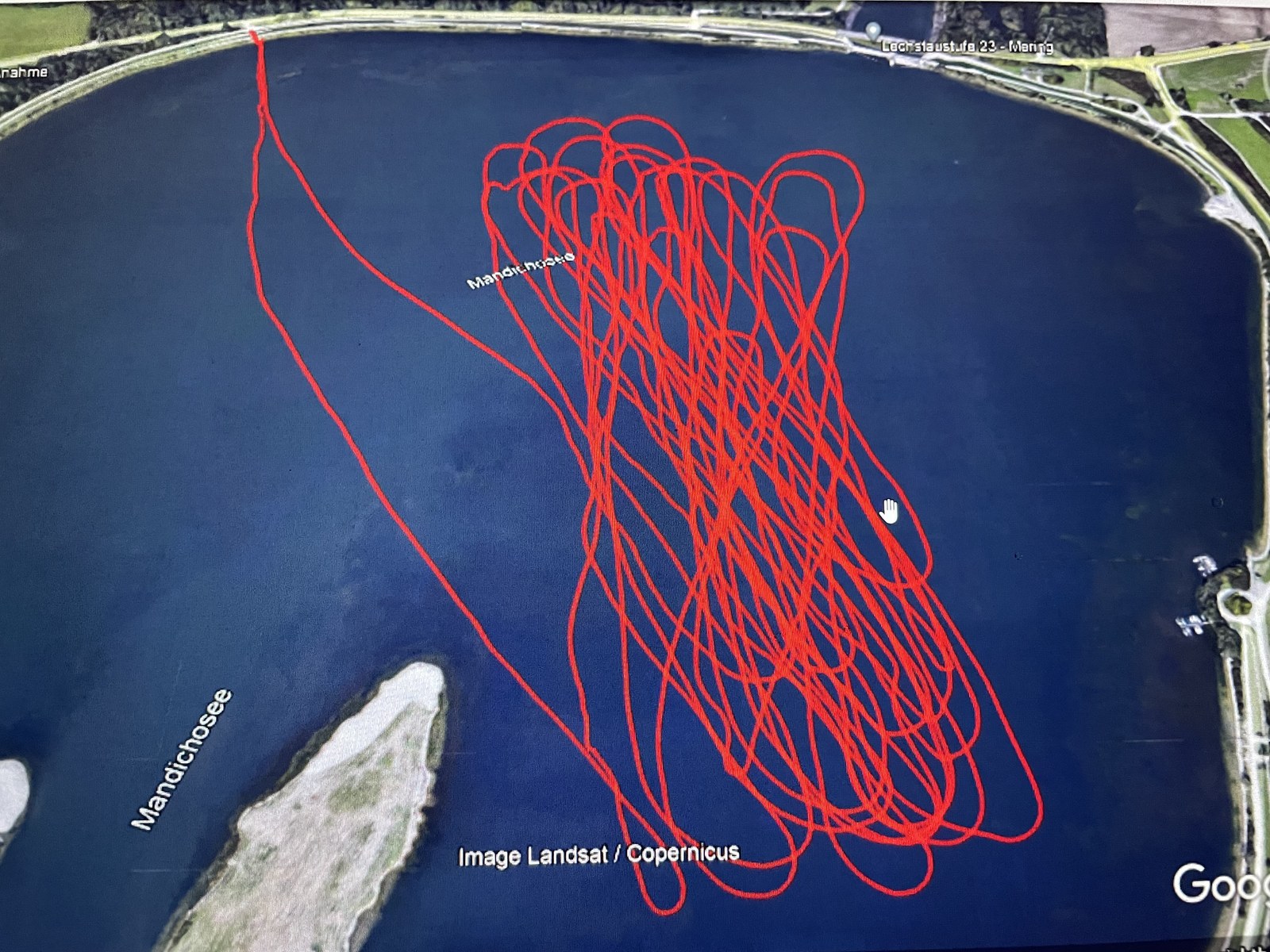 Kein schlechter Tag mit viel Sonne und ausreichend Wind, zumindest die erste Std. immer schön druck im Segel mit knackigen Böen, dann wurde es sehr löchrig...