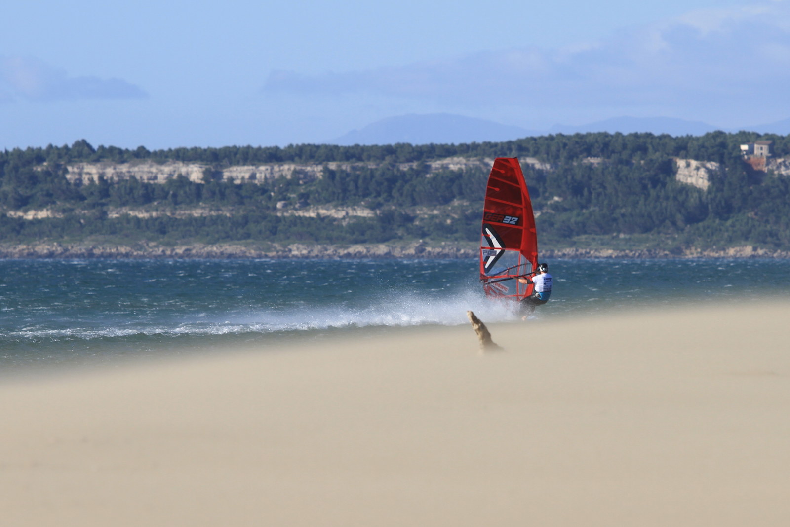 Es gab viel Wind - Windspitzen bis 45 Knoten - , leider zu nördlich und mit ordentlich Rolling Chop. Zum schnell fahren war es nichts, für ein paar abenteuerliche Bilder von ein paar Starts hat es aber gereicht.