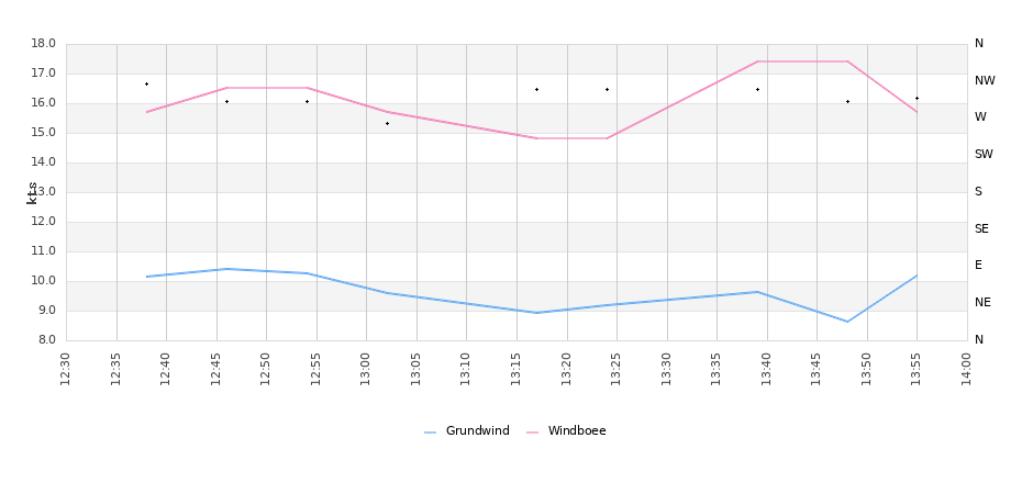 Böen rutschen am Lago di Ammer. Längere Böen aus NNW mit noch längeren Null Wind Phasen. :0) Warm und sonnig...
