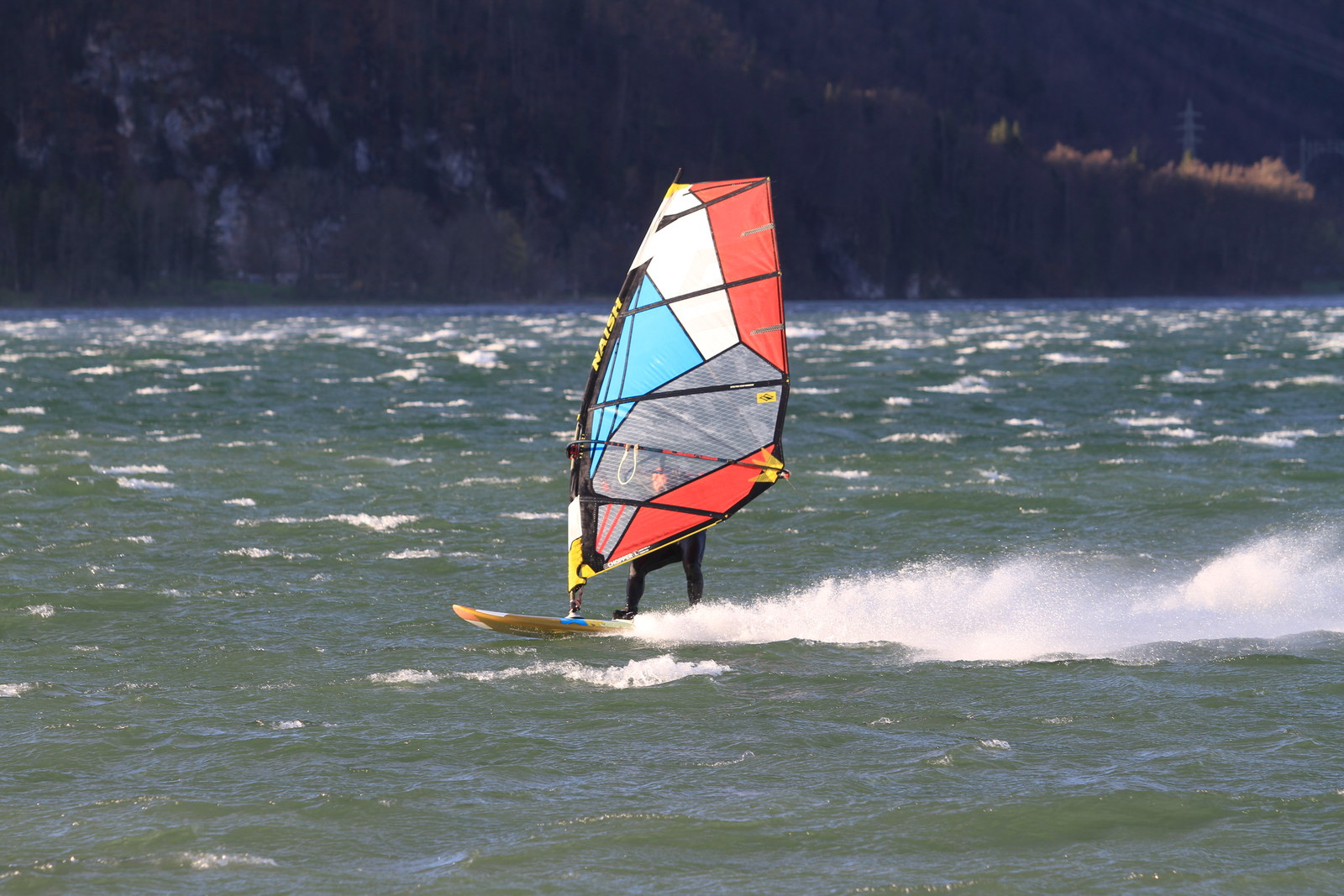 Big Friday! Am Ufer stehend hätte man die Bedingungen heute Vormittag schnell als unfahrbar bezeichnet. Ein paar wirklich gute Windsurfer bewiesen jedoch das Gegenteil. Gemessene Spitzenböe an der Messstation am Trimini 51 Knoten – auf dem Wasser war es heute sicher kein Spaziergang.