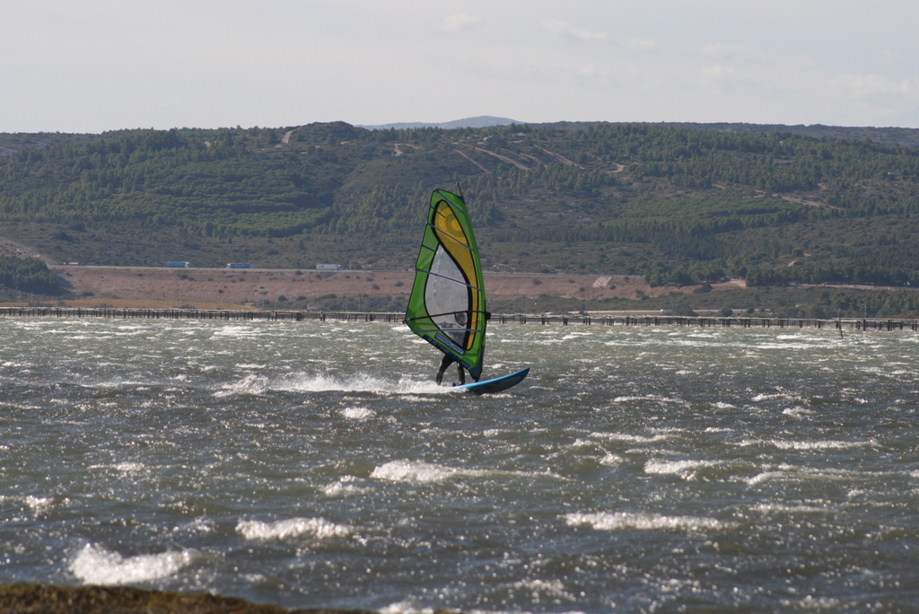 Habe heute blaues Sternchenbrett nebst noch jungfräulichem Fly ausprobiert. Ging erstaunlich gut, in Trapez und Schlaufen "eingehängt", konnte mich keine noch so garstige Böe umpusten.(Hab nix kaputt gemacht :o) ! )Hatte leider nicht so viel Kraft wie die Männer, um länger zu fahren.