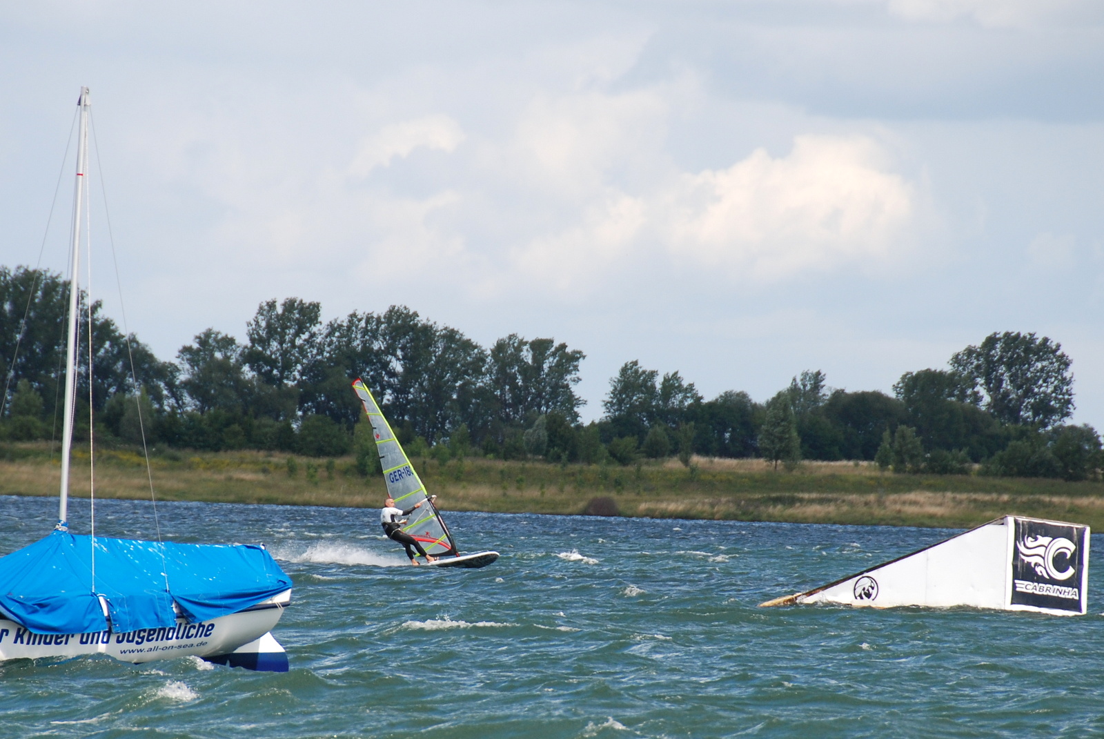 Sonne, Wind und ich im Tiefflug übern See - so geht das in Saxonia. Rogues Bay und ich waren ein super Team. Leider gab es nicht die finalen Böen, sonst wären auch über 60kmh möglich gewesen.....;o)))