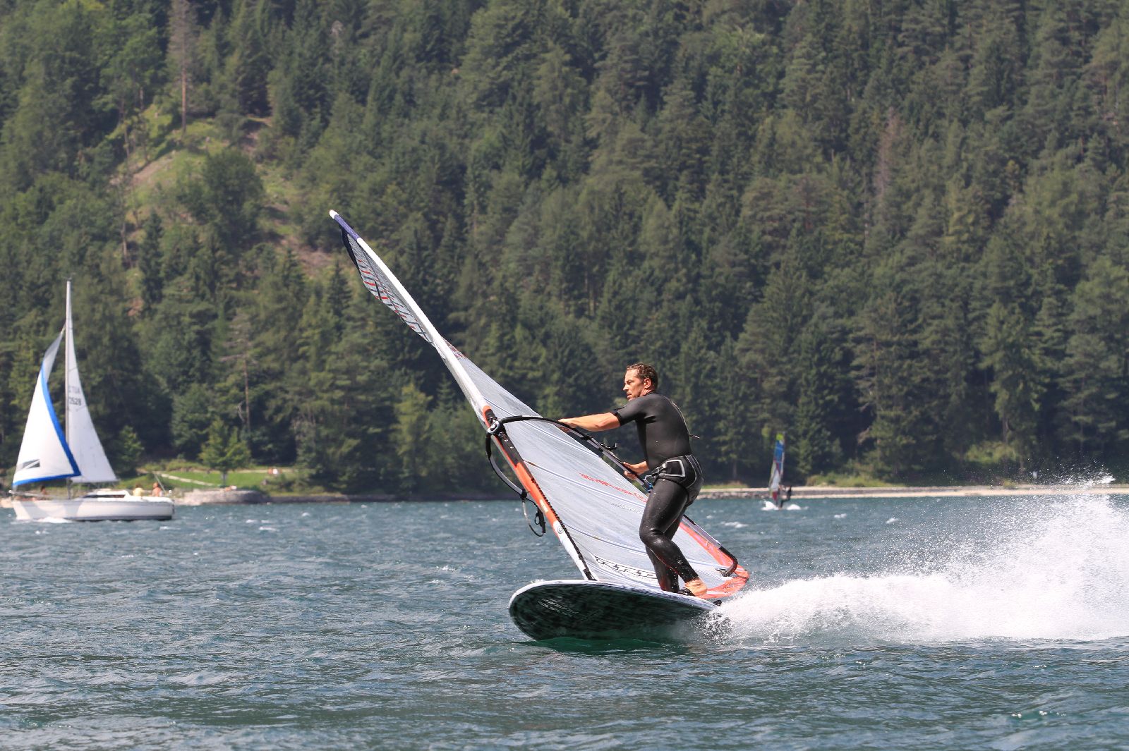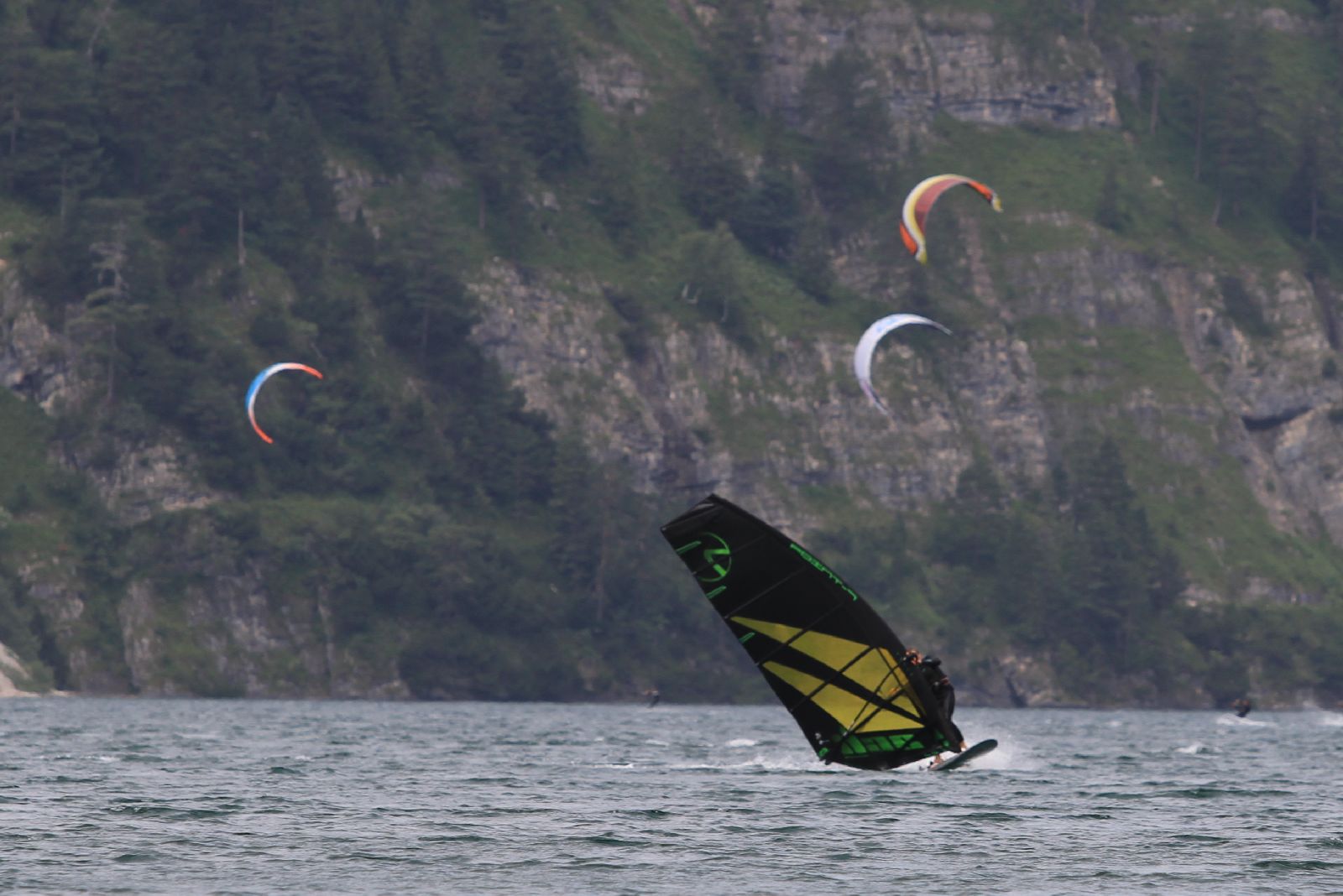Sehr schöner Wind am Achensee heute, leider hat er dann mit einem aus Süd aufziehenden, heftigen Gewitter etwas zu früh abgestellt...Anfangs mit dem großen Zeug gut unterwegs, später dann, mit zunehmenden Wind auf´s kleinere gewechselt.