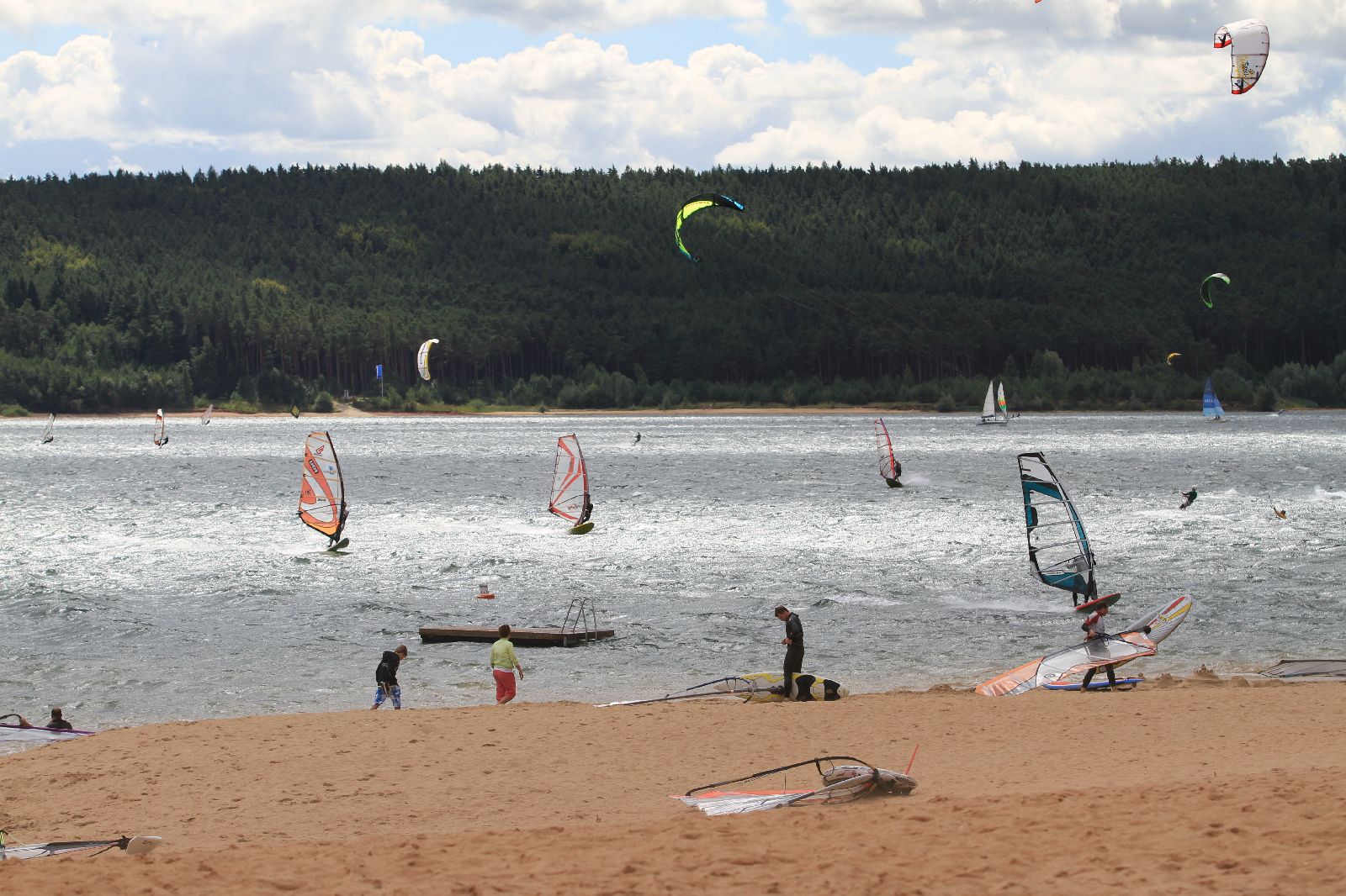 Tolle Bedingungen am See und das sogar an einem Wochenende! Viel Sonnenschein, drei sehr kurze Schauer zogen durch, mit denen der Wind immer noch etwas stärker wurde. Ein sehr guter Surftag, auch wenn einiges los war.
