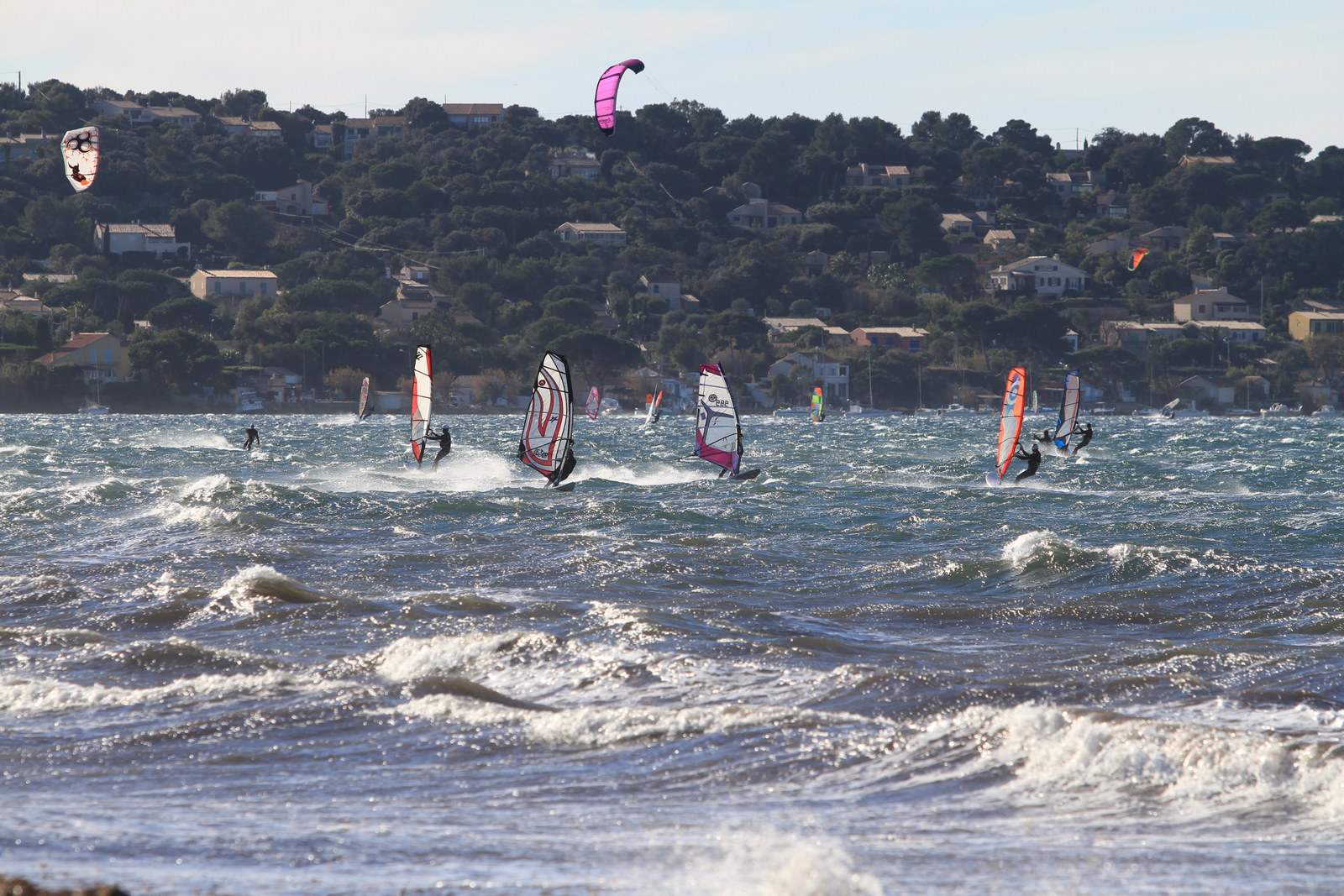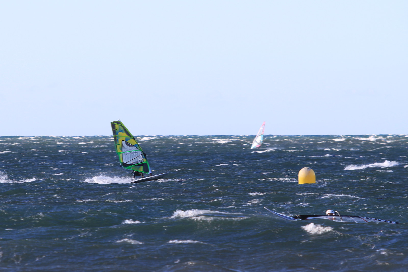 Sehr gute Bedingungen heute, allerdings auch ganz schön viel los auf dem Wasser. Mit Segeln um die 5qm war man heute gut unterwegs. Luft um die 13 Grad, das Wasser etwas wärmer.