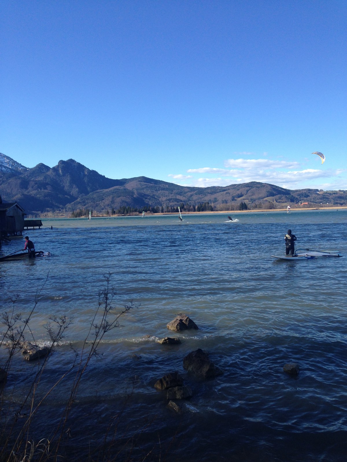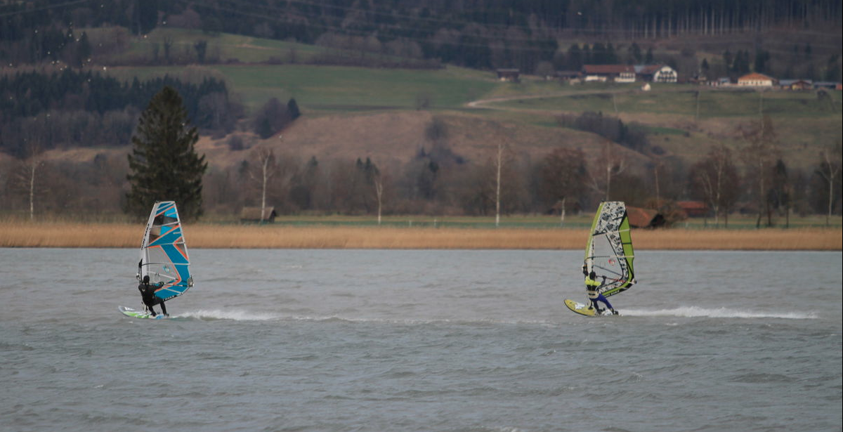 Kochel on fire... Mit Miggo am Start gewesen. Zuerst mit 4,0 dann hat der wind geschwächelt, dann auf 5,0 gewechselt. Wind kam kurz zurück mit full powaaa. Alles in allem sehr böig und wechselhaft aber ging bis 12 Uhr bei warmen 9-10 Grad.