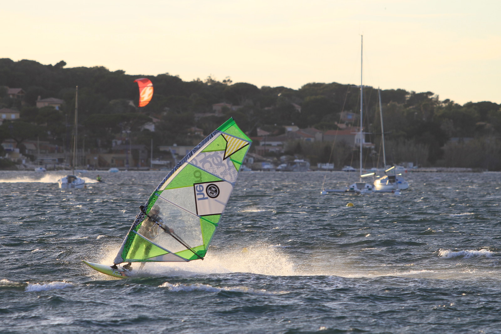 Erneut guter Wind im Süden Frankreichs. Heute für die kleineren Segel, starker Mistral aus NNW. >Galerie
