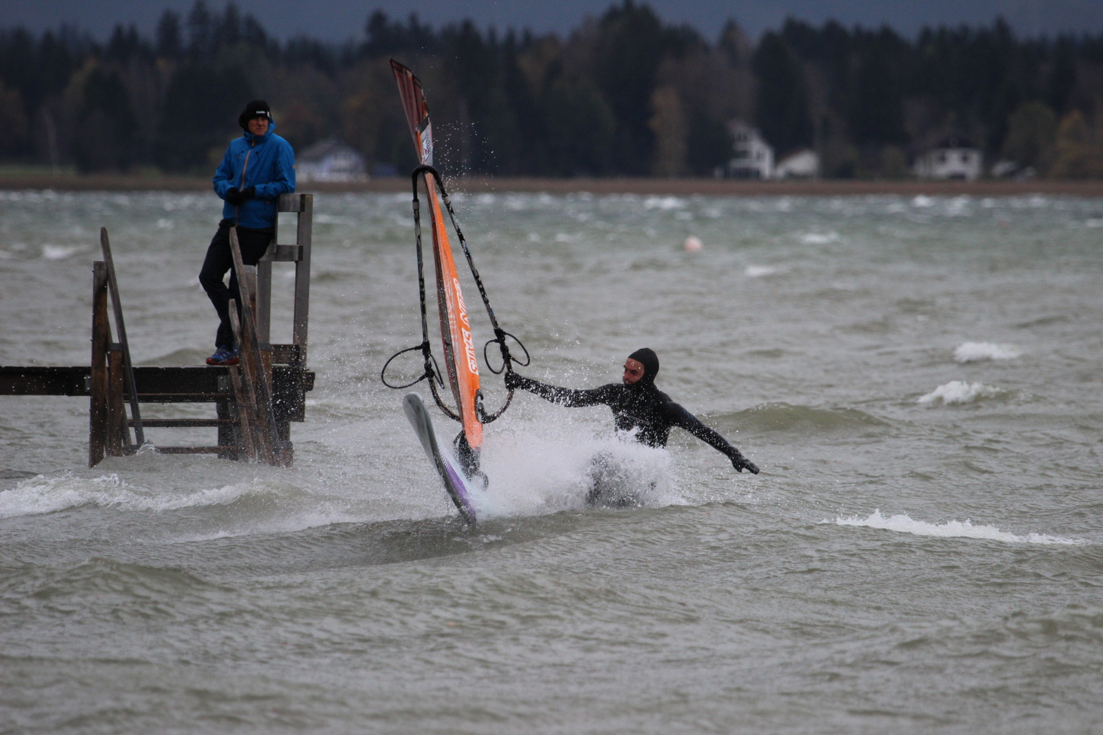 Herwart brauchte heute zwischen 25 kts und 45 kts Wind an unseren Seen. In den Böen hat 4.5 - gut gepasst, dazwischen wars bissel zu klein. Schee wars aber :)