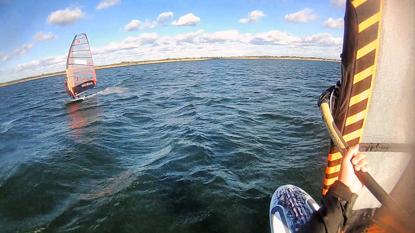 Nach dem Durchmarsch von Orkantief Herwart gab's heute Rückseitenwind mit Sonnenschein. Bei NW mit 18-25 Knoten und 11°Celsius waren es gute Slalombedingungen.
