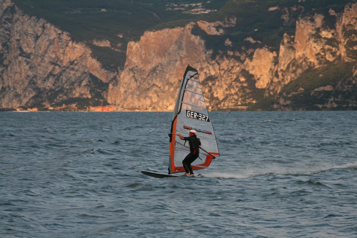 Um 2:00 aufgestanden und los zum Lago, um auch zum Vento dort zu sein - das hat wunderbar geklappt mit neuer Rekordzeit ohne Geschwindigkeitsüberschreitungen :) (3:25h) am Lago angekommen. Super Wind, gleich aufgebaut und raus - richtig entspanntes fahren mit 7.0, besser kanns fast nicht sein.
