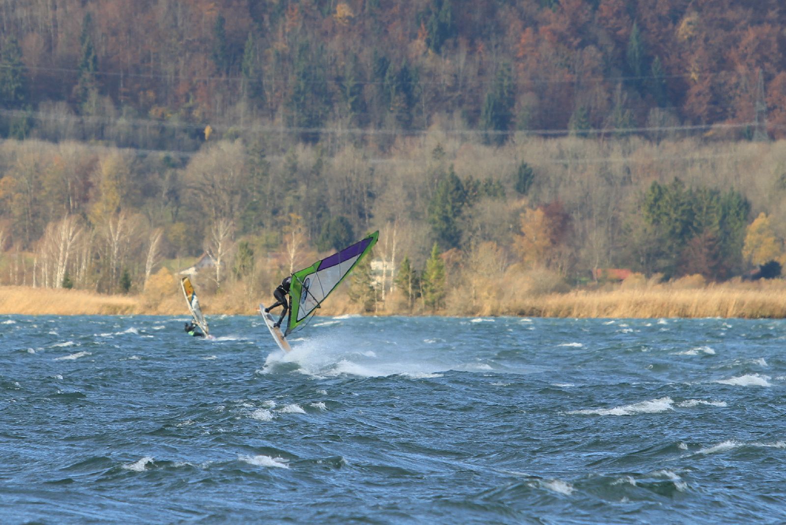 Toller, starker Wind, sommerliche Temperaturen (mit Ausnahme vom Wasser mit knapp 9°) - ein guter Tag am Kochelsee. Für einen normalen Freitag war der Parkplatz gut voll, auf dem Wasser hatte man genug Platz. >Fotogalerie